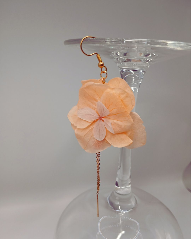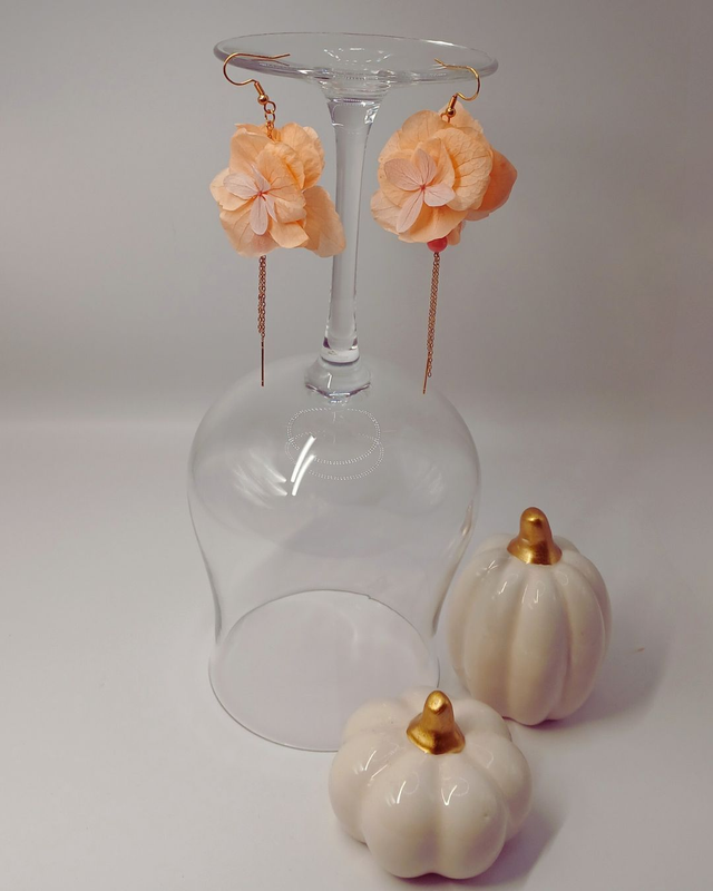 Douceur Inoxydable -Bijou fleuri artisanal – Boucles d’oreilles acier inoxydable doré et hortensia