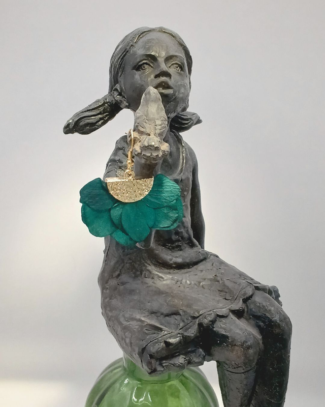 Entretien : Éviter le contact prolongé avec l’eau, les parfums ou produits cosmétiques afin de préserver la fleur. Ranger à l’abri du soleil direct et de l’humidité.
